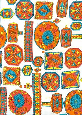 Take time out to share with me this ever growing collection of colourful fabrics gathered together over several years, dating from around the 1950’s through the 60’s and 70’s; once curtains, dresses, or upholstery the colours, textures and bold designs are both amazing and inspiring.